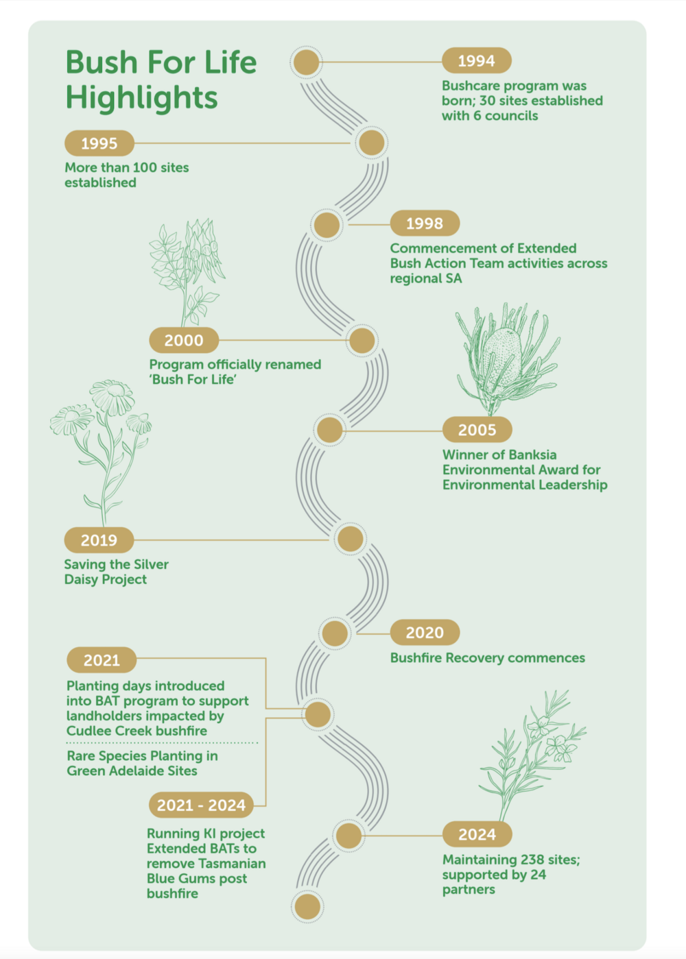 As Bush For Life celebrates its 30th birthday, the program is looking to the future. The team is calling for more site carers, particularly for a beautiful bushland site in Willunga. Volunteers receive all the training, tools, and support needed to make a tangible impact on the health and resilience of local bushland.