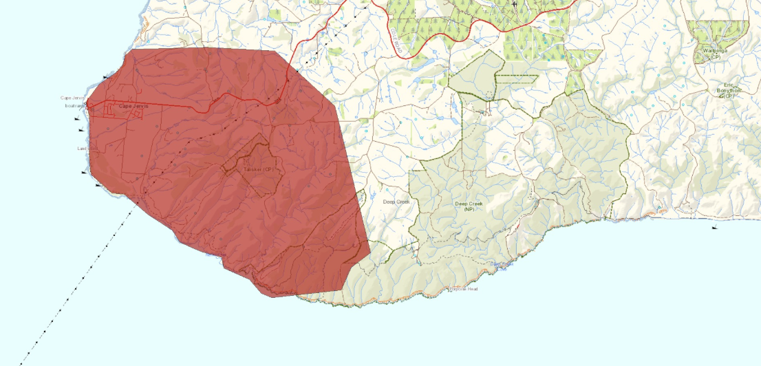 Take shelter now in a solid building. You are now in danger. Do not delay. Do not leave or enter this area in a vehicle or on foot. It is too late to leave as the roads will not be safe. Conditions are dangerous and firefighters are now unable to prevent the fire spreading. Shelter before the fire arrives as heat can kill you well before the flames reach you. The Deep Creek fire is uncontrolled. This scrub fire is burning in a west north westerly direction towards Cape Jervis, Silverton, Deep Creek and Main South Road, north west of the Deep Creek National Park. . Conditions are continually changing. For updates check the CFS website at cfs. sa. gov. au or phone the Information Hotline on 1800 362 361.
