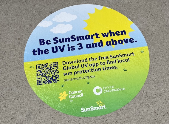 The council says subtle yet engaging pavement stickers have been installed in prominent locations at 12 parks and playgrounds, and eight community centres in the City of Onkaparinga through the inaugural SunSmart Parks project.