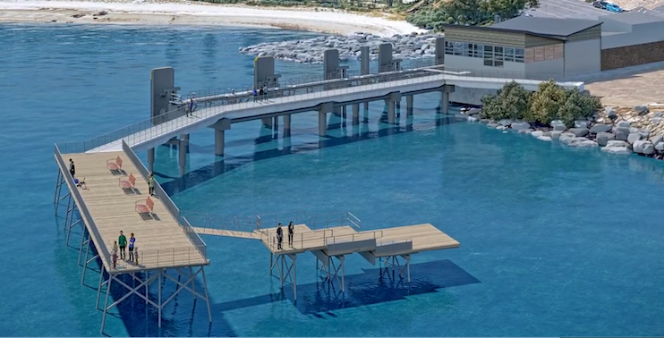 It will include a new concrete boardwalk connecting to the historic timber jetty, new steel piles, refurbishment of the remaining timber jetty, new lighting, and removal of the temporary cruise ship landing and crane pad.