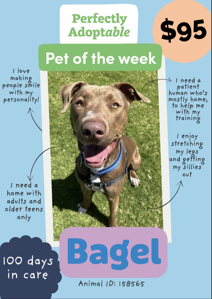 Pet of the Week: Bagel – A Gentle Giant with a Goofy HeartAfter more than 100 days in care, sweet-natured Bagel (Animal ID: 158565) is more than ready to find the patient, loving home he deserves.