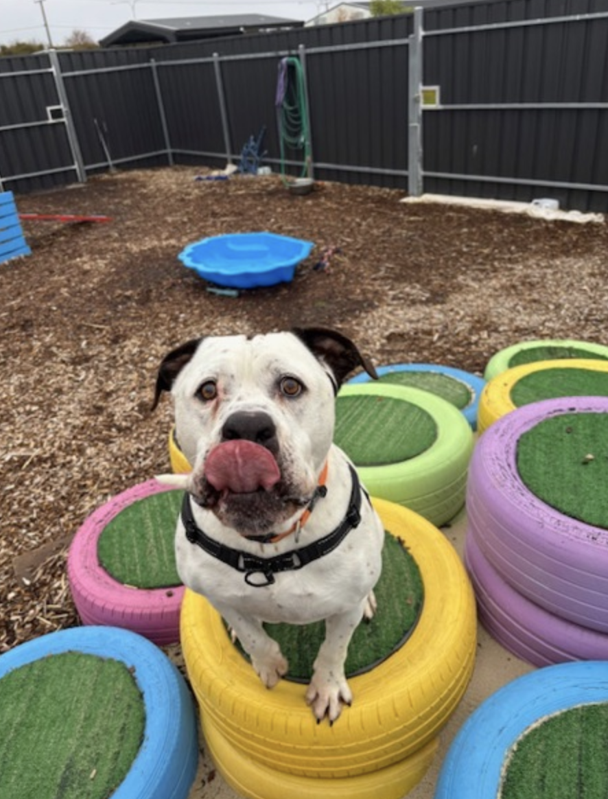 He’s super sociable, enjoys the company of other dogs (even bigger ones!), and is happiest when surrounded by his favourite people. While he’s a gentle soul, he can be a bit unaware of his size, so he’d be best suited to a home with adults or older children.